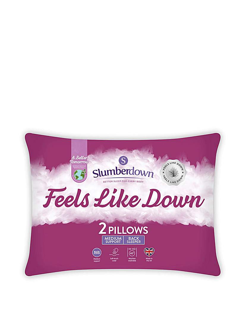 Slumberdown Feels Like Down Pillows 2 Pack - Ultra-Soft Down Alternative Pillow for Front, Back & Side Sleepers | UK Made, Non-Allergenic, Machine Washable (48 x 74cm)