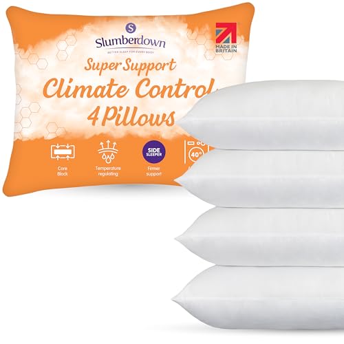 Slumberdown Climate Control Pillows 4 Pack - Super Support Climate-Adaptive Pillow for Side & Hot Sleepers, Core Foam Block | UK-Made, Non-Allergenic, Washable (48 x 74cm)