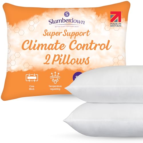 Slumberdown Climate Control Pillows 2 Pack - Super Support Climate-Adaptive Pillow for Side & Hot Sleepers, Core Foam Block | UK-Made, Non-Allergenic, Washable (48 x 74cm)