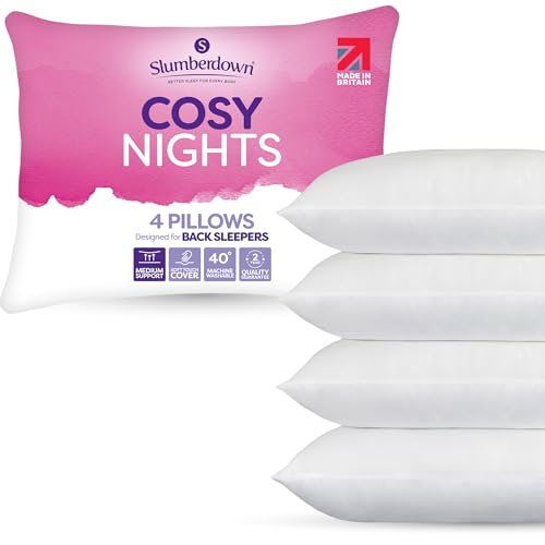 Slumberdown Cosy Nights Bed Pillows 4 Pack Non-Allergenic Medium Support Back & Side Sleeper Pillow - Soft Touch Breathable Cover, Made in the UK & Washable, Packaging May Vary (48 x 74cm)