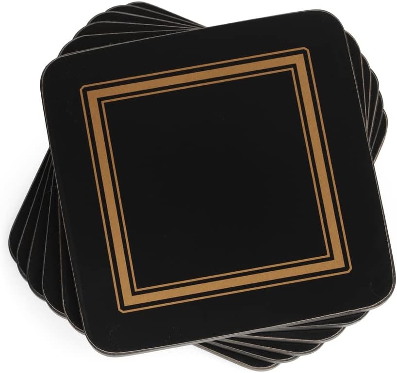 Pimpernel Coasters Black Classic Set of 6 Cork Backed 10x10cm Heat Resistant