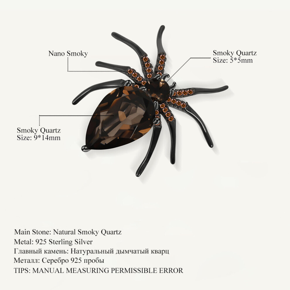 GEM'S BALLET Natural Smoky Quartz Spider Brooches for Women Gun-black 925 Sterling Silver Animal Brooch Pin Fine Jewelry Gift