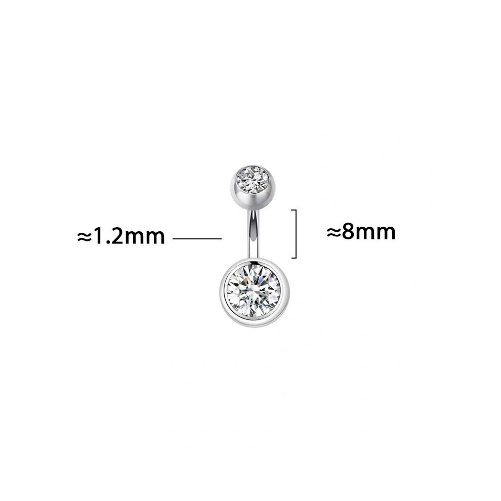 (925 Sterling Silver White-1510 Black Gun Plated) 925 Sterling Silver Round Shape Belly Button Ring Body Piercing Zircon Pin Length 6 8 10 MM Width 1.