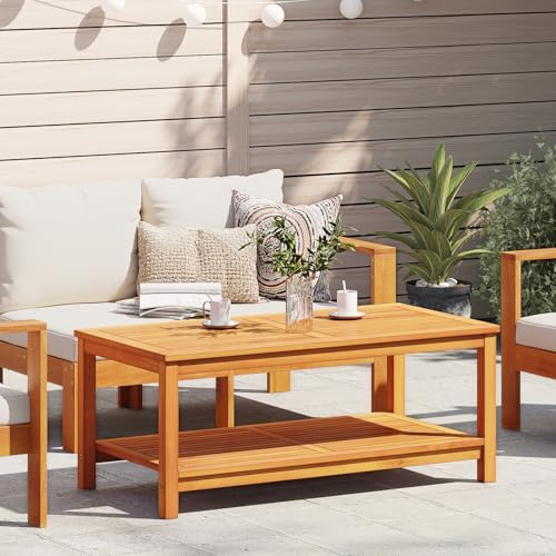 HaoChrymec Solid Pine Wood Coffee Table, 2-Tier Storage Design with Open Shelves, Rustic Living Room Table for Sofa & TV Area, Natural Wood Finish, 110x55x45 cm