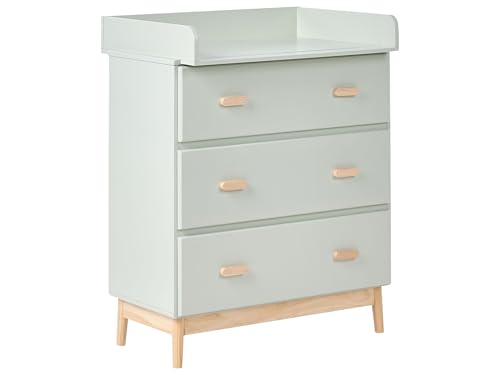 Beliani Stylish Changing Table Dresser with Drawers MDF Pine Wood Legs Nursery Storage Light Green Quilpie