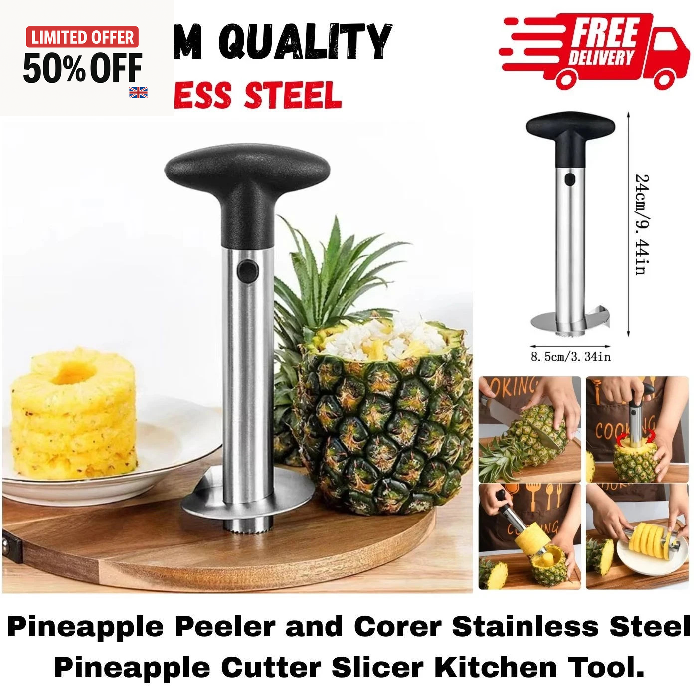 5X(Stainless Steel Pineapple Peeler, Corer, Slicer, and Cutter - Easy1197