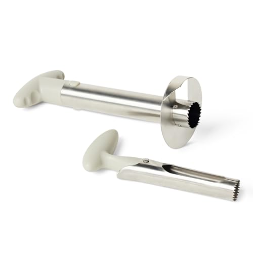 Amazon Basics Pineapple Corer and Slicer and Apple Corer, 2-Piece Set, Dishwasher-Safe, Linen Gray