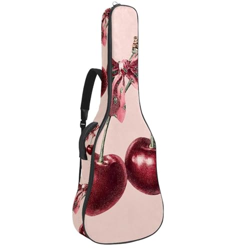 Cute Red Cherries with Pink Bow Acoustic Guitar Bag Thick Padded, Waterproof Guitar Gig Bag for 40 41 42 Inch Guitars