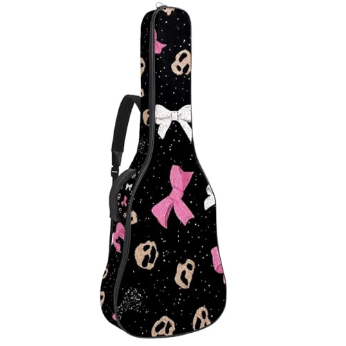 Pink Bows and Dots Pink Background Acoustic Guitar Bag Thick Padded, Waterproof Guitar Gig Bag for 40 41 42 Inch Guitars