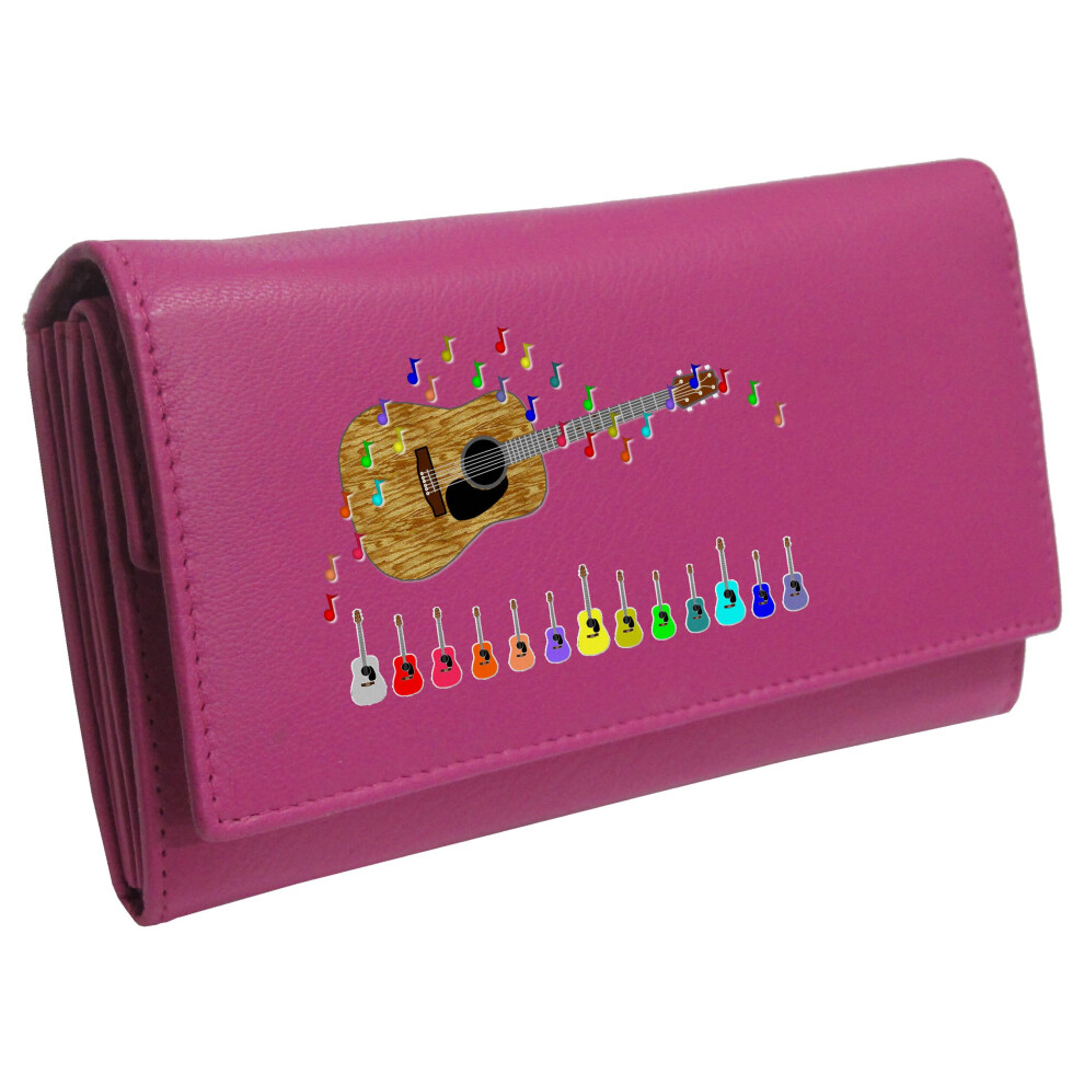 (Pink) Acoustic Guitar Womans Purse Notes Flying KLASSEK Brand image on Real Animal Leather Folk Guitarist accessory gift