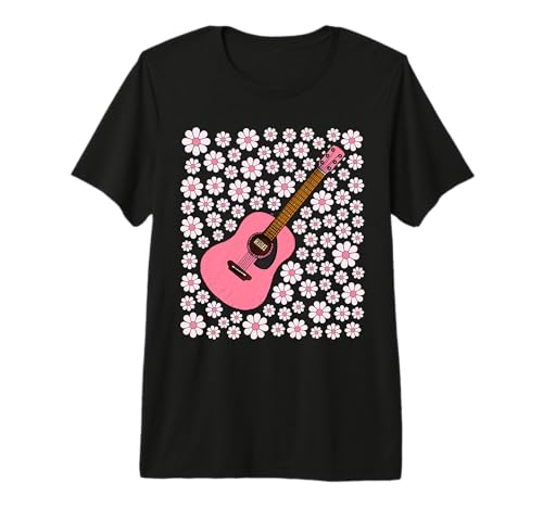 Guitar Floral Pink Flowers Acoustic Guitarist Spring Summer Premium T-Shirt