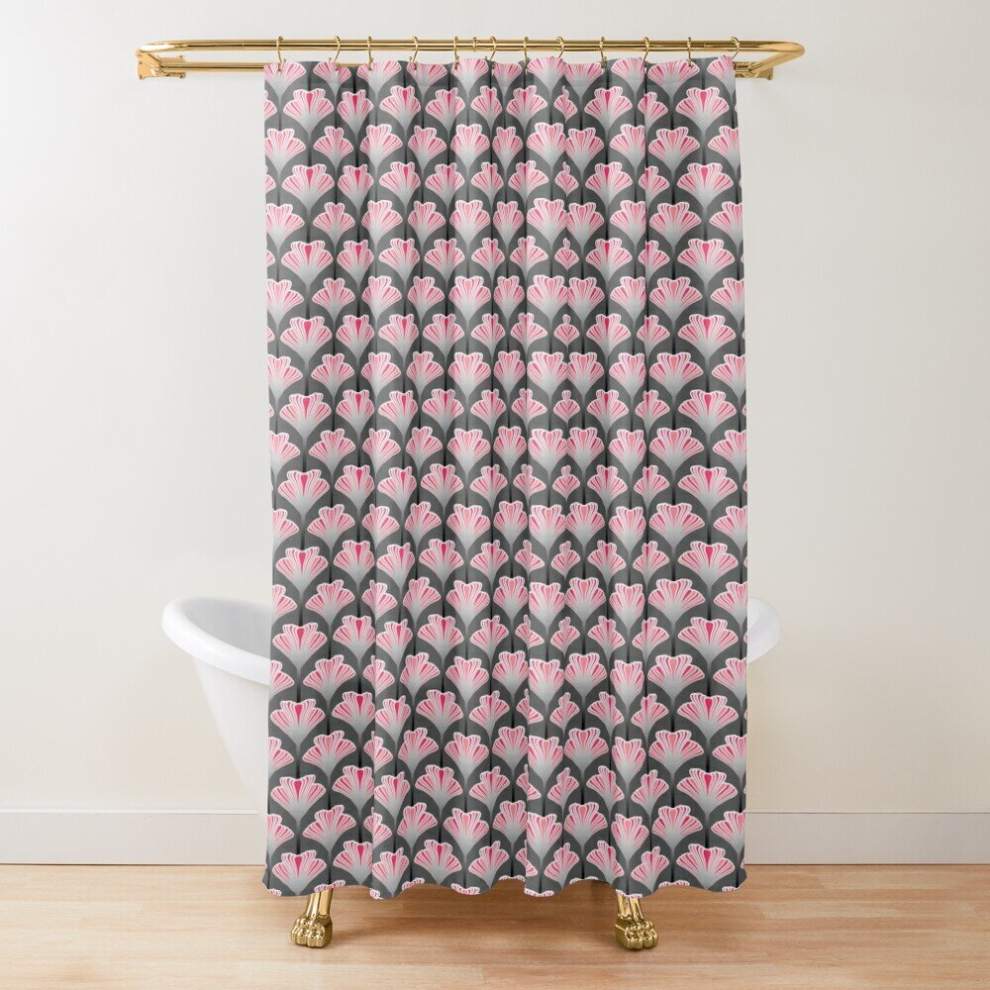 Shower Curtains Art Deco Lily, Gray / Grey and Coral Pink for Bathroom Decor 72x72 inches