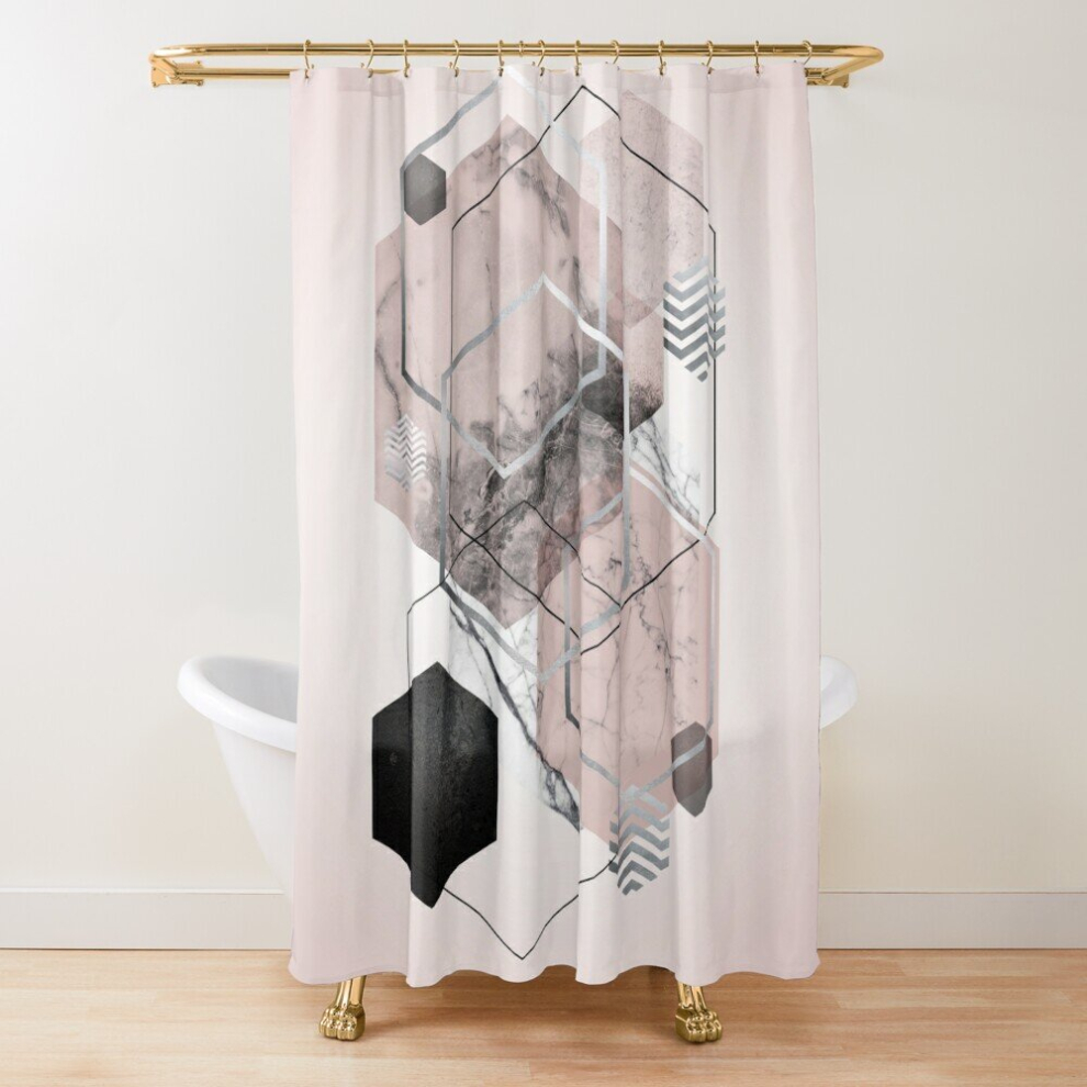 Shower Curtains Geometric Hexagons in Blush Pink and Grey for Bathroom Decor 72x72 inches