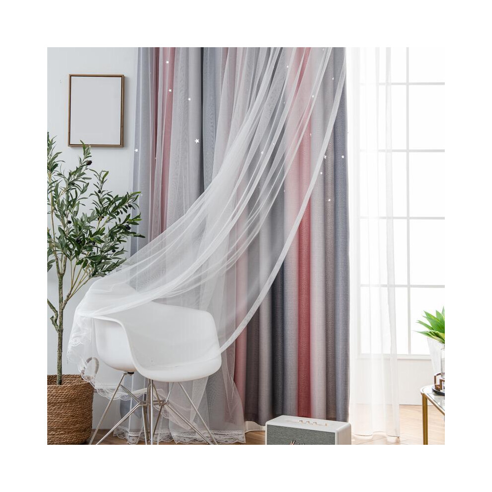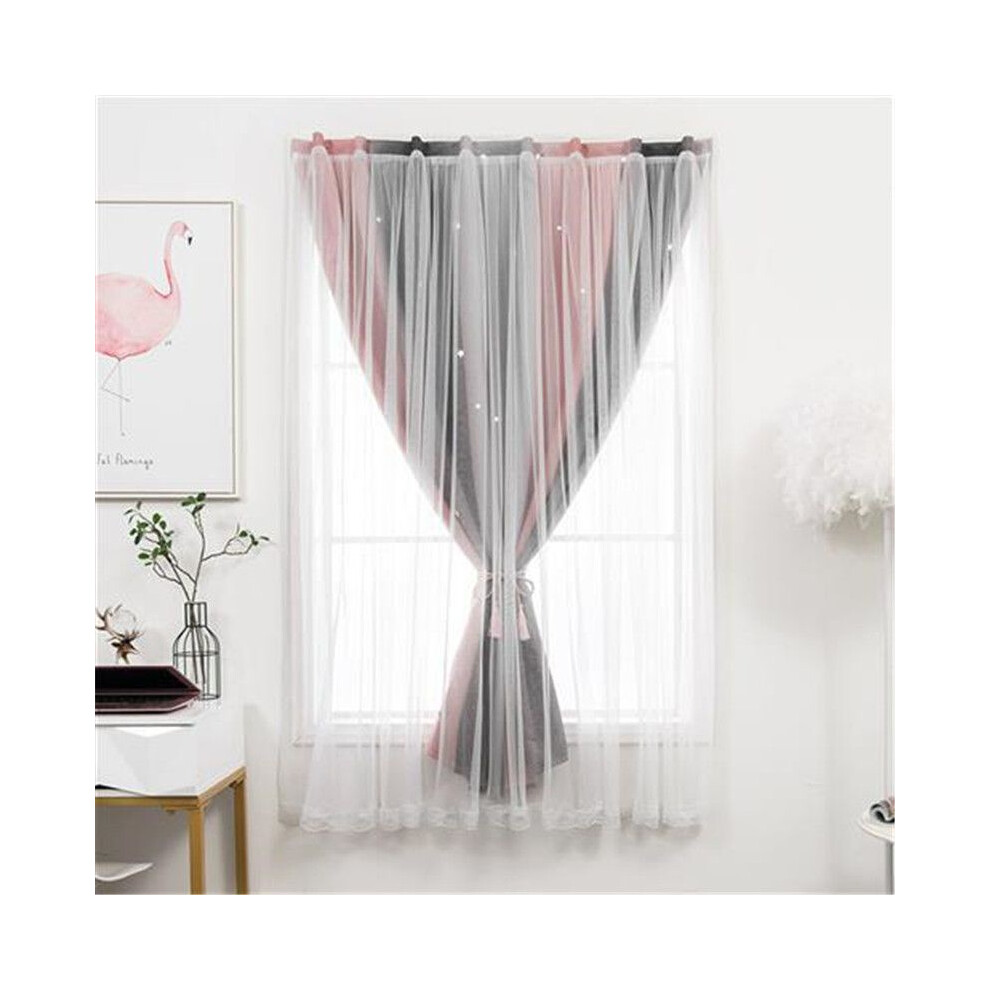 2PCS Star Curtains for Kids Girls Bedroom Living Room, 134W x 210L, Pink/Purple/Gray
