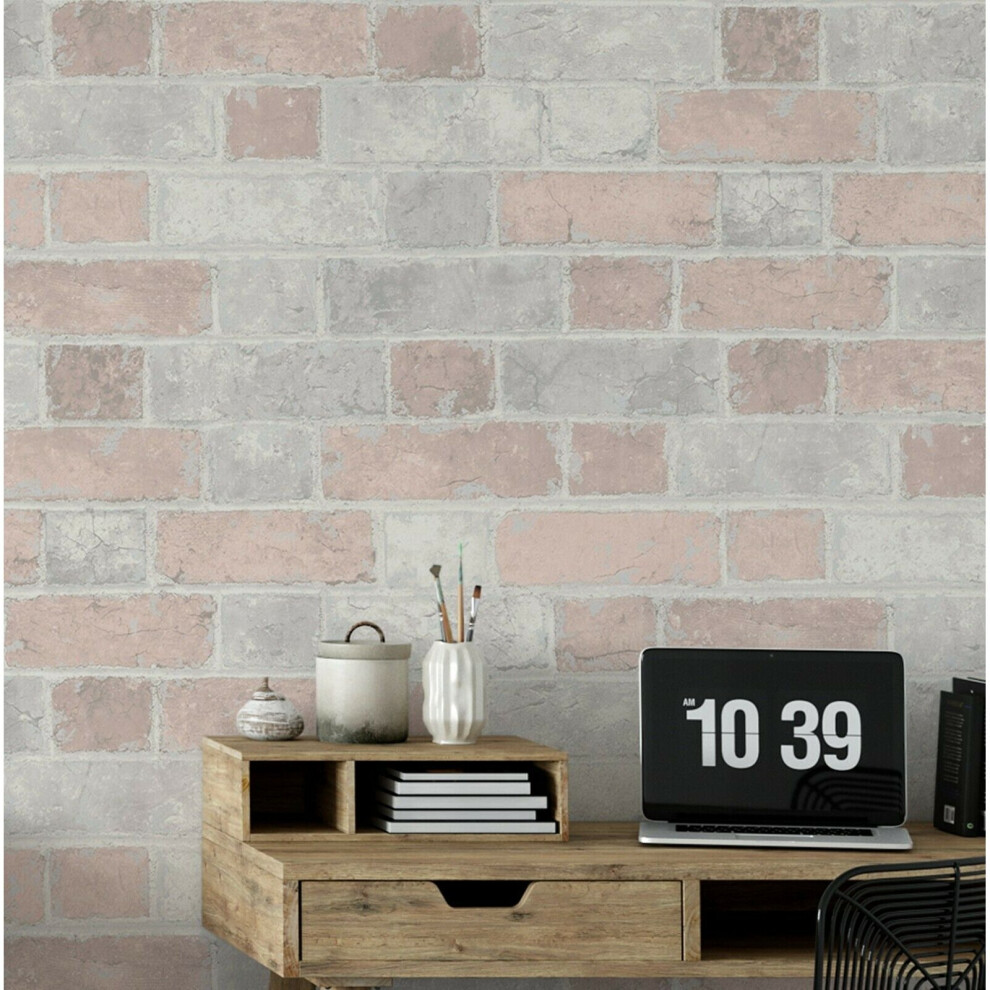 Brick Wall Effect Pale Pink Light Grey Rustic Wallpaper Blush Girls