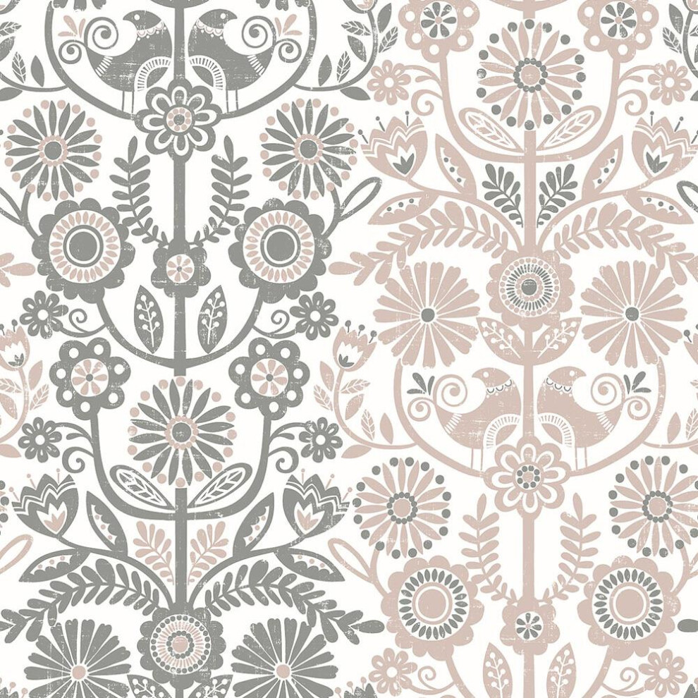 A Street Prints Lovebirds Pink Grey Wallpaper Floral Flowers Paste The Wall