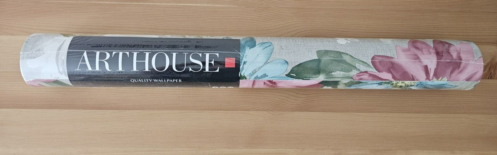 Arthouse Painted Dahlia Floral Flower Raspberry Pink Blue Grey Wallpaper 676107