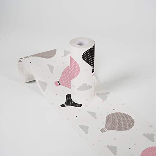 Lovely Kids Wallpaper Borders Self-Adhesive Cloud Balloons A.S. Création Wallpaper Borders for Kids 5.00 m x 0.155 m Pink Grey Black Made in Germany 403737 403737