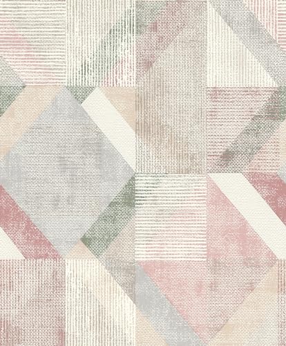 Rasch Wallpaper 311914 - Non-Woven Wallpaper with Triangles and Squares in Dusky Pink, Beige, Green and Grey from The Color Your Life Collection - 10.05 m x 0.53 m (L x W)