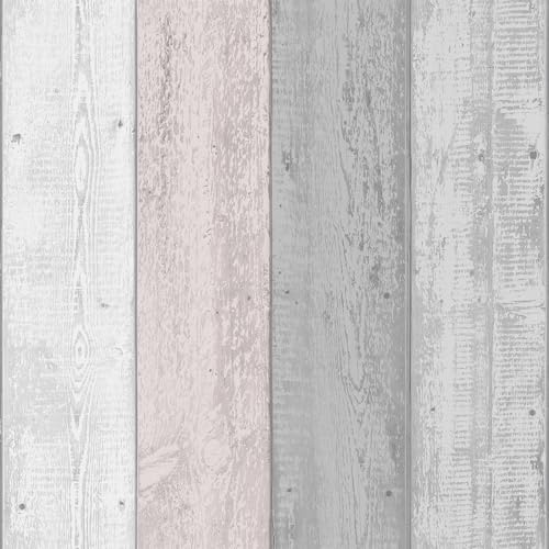 Fresco Decorative Country Plank Blush Pink and Grey Wooden Wallpaper (WAS 13.99)