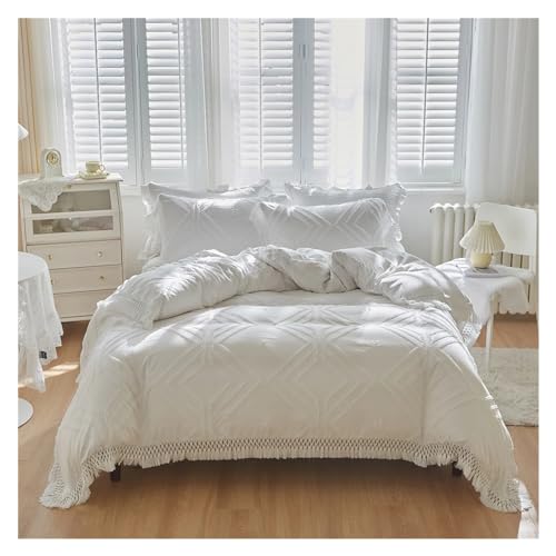 JQQJZLC Cut Flower Tassel Bedding Sets Grey Pink White Duvet Cover and Pillowcase Set Quilt Cover Set Queen King Bed Set Home Summer Bed Four Pieces Set(B,Queen 200X230cm 3pcs)