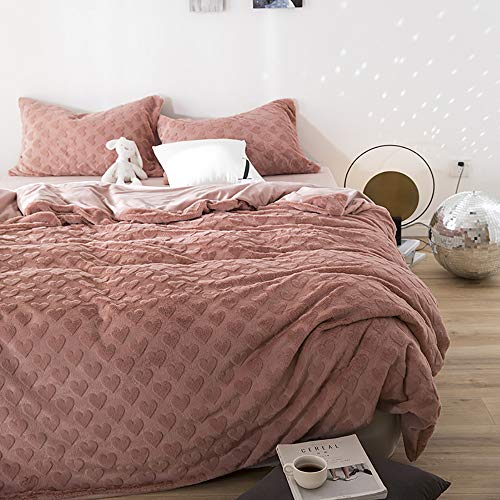 WBDWWTD Bedding Set King Size Grey and Pink, Double Bed Duvet Covers Grey, Double Duvet Cover Bedding Set Double Bed with Fitted Sheet Winter Set Quilt Cover Sets Soft Warm Flannel Twin Size