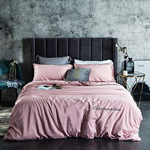 TXQHD Double Duvet Covers Set Grey and Purple, Bedding Sets King Size Silk, Bedding Set Full Satin Silk Duvet Cover Sets Soft Silky 4Piece Comforter Cover Set Minimalism Yellow Pink Green