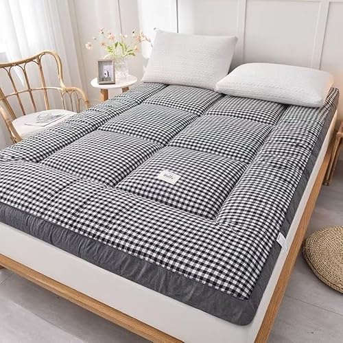 Ultra-soft full-size floor mat, thick, skin-friendly, fluffy mattress, foldable and rollable, dormitory bedding (checkered pink, 120x200 cm)(Grey,120 * 200cm)