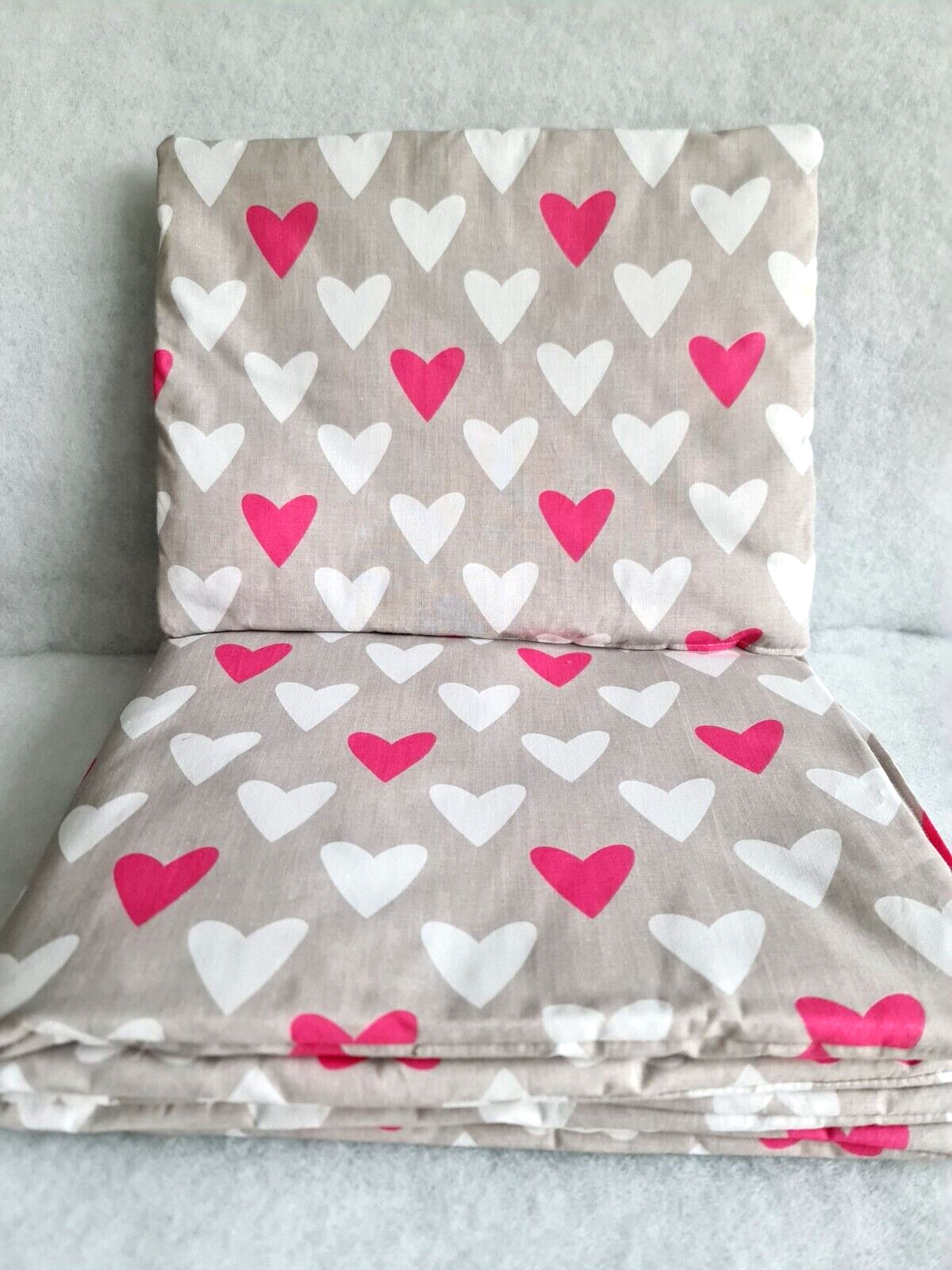 2pc BEDDING SET for bedside crib QUILT PILLOW filled swing pram pink hearts grey