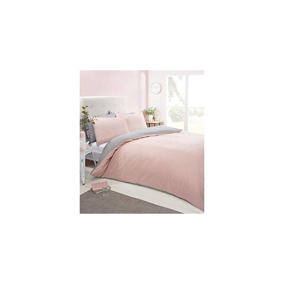 Brentfords Single Duvet Cover Set, Super Soft Cosy Warm Luxurious Plain Dye Modern Comfy Reversible Single Bedding Set with Matching Pillowcase - Blush Pink/Grey