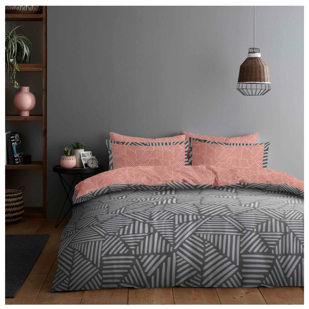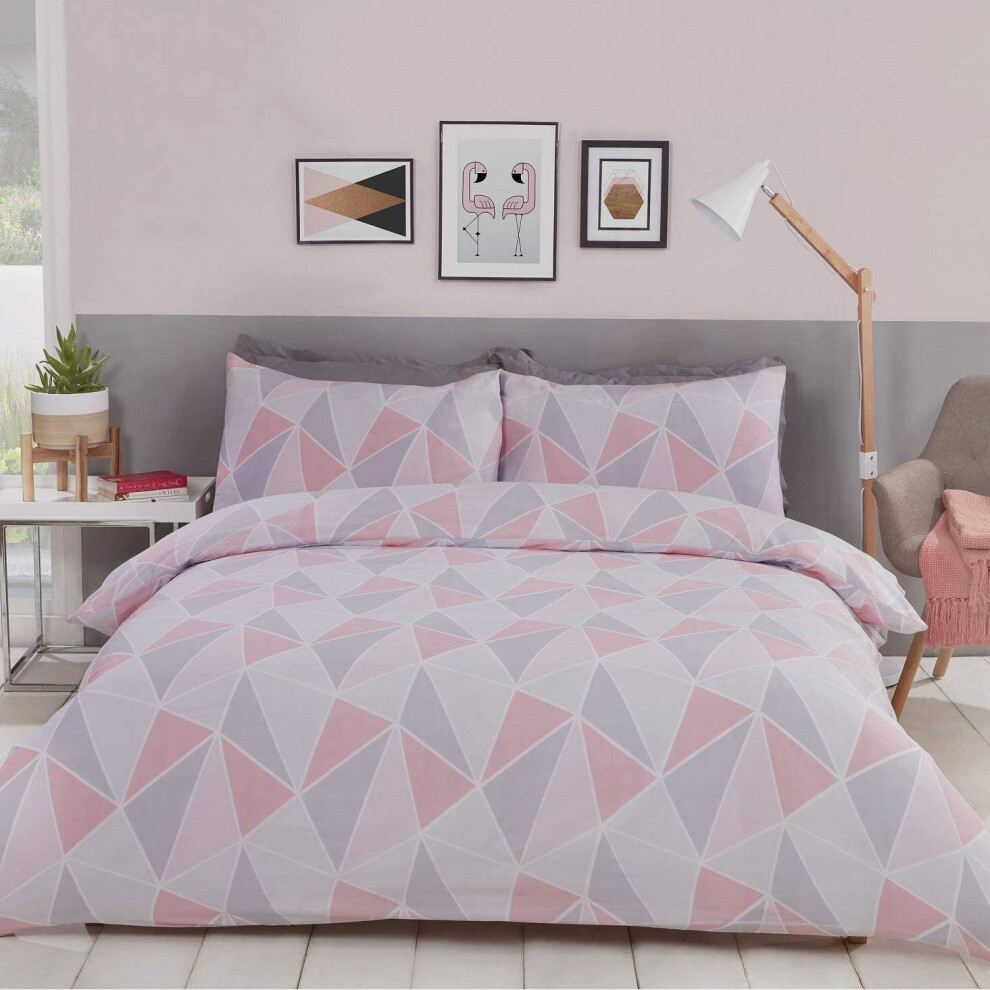 MyHome Geometric Double Duvet Quilt Cover Bedding Set Pink/Grey
