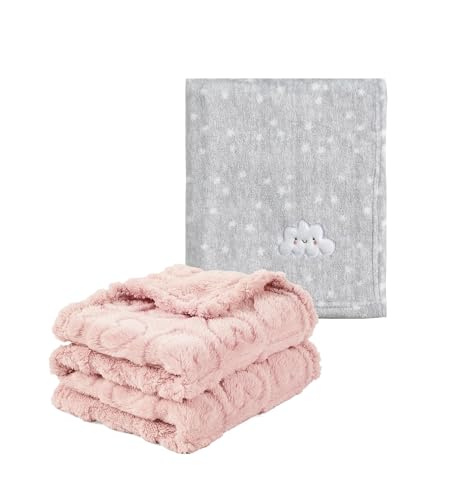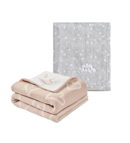 CREVENT 2Pcs 75cmX100cm Cute Cozy Fluffy Warm Baby Blankets for Infants Toddlers' Bedding Crib Cot Stroller - Grey Cloud + Knit Pink