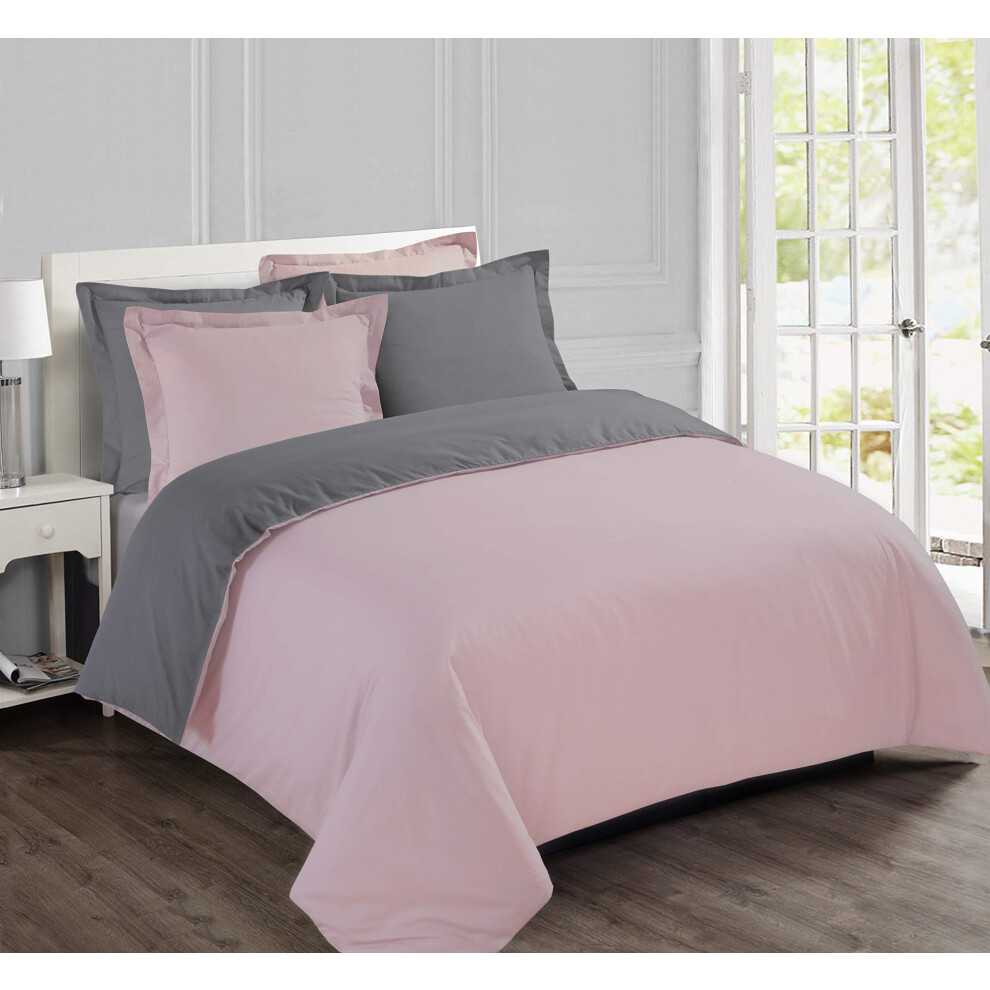 Ev Dekor Double Duvet Cover Sets – Reversible Brushed Microfiber Bedding- Plain Dye Quilt Cover with Pillowcase - Pink/Grey