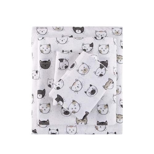 Intelligent Design Cozy Soft 100% Cotton Flannel Print Animals Stars Cute Warm, Ultra Soft Cold Weather Sheet Set Bedding, Twin, Grey/Pink Cats 3 Piece