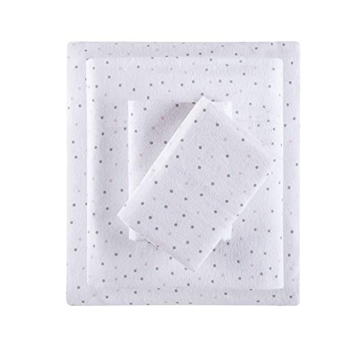 Intelligent Design Cozy Soft 100% Cotton Flannel Print Animals Stars Cute Warm, Ultra Soft Cold Weather Sheet Set Bedding, Twin, Grey/Pink Dots 3 Piece