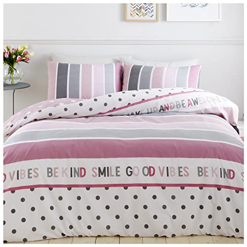 GC GAVENO CAVAILIA Striped Polka Dot King Bedding Set | Reversible Soft Duvet Cover with Pillowcases | Hypoallergenic, Lightweight & Breathable Polycotton Quilt Bedding, Easy Care Blush Pink & Grey