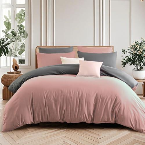 APEX FURNISHINGS King Size Duvet Cover Sets - 100% Brushed Microfiber Bedding Quilt Cover with Pillowcase - Pink/Grey