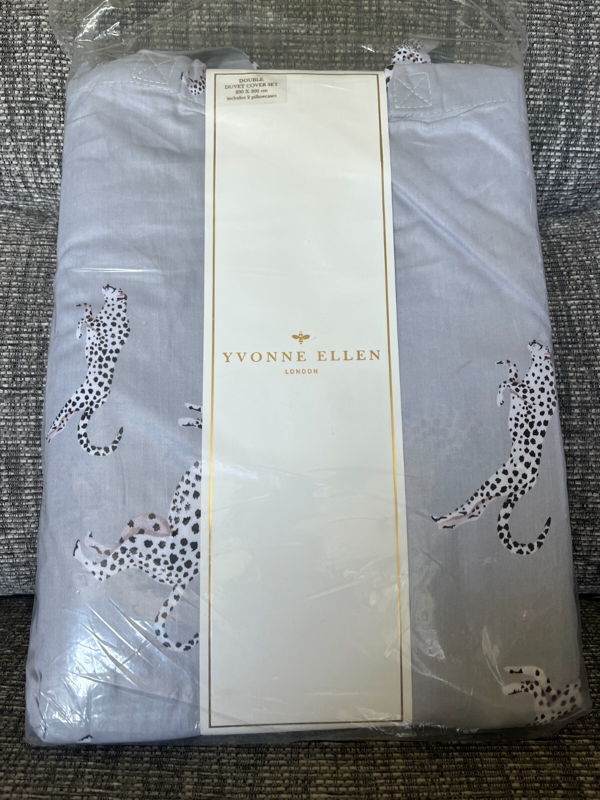 Yvonne Ellen Cheetah Grey Pink Bedding Set Double 220 Thread Count Cotton Sateen
