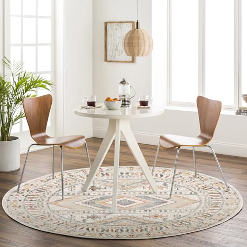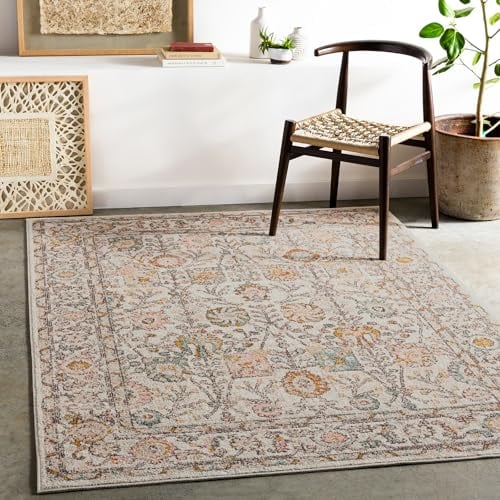 Livabliss Dublin Vintage Rug - Area Rugs Living Room 160x160 cm, Dining Floor, Kitchen, Traditional Multicoloured Boho Style, Easy Care Pile, Bohemian Large Rug, Ivory, Pink and Grey