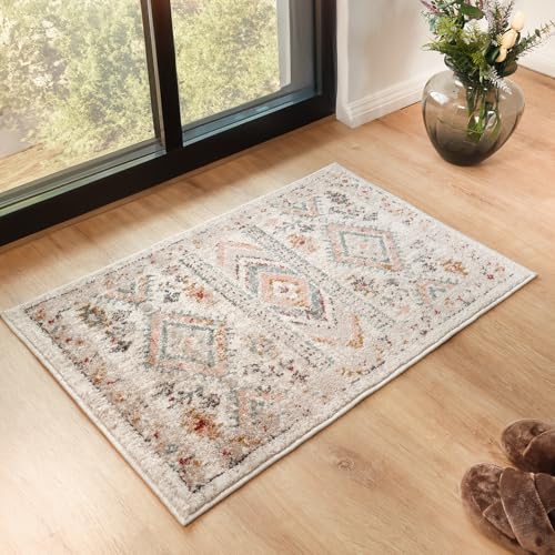 Livabliss Dublin Vintage Rug - Runner Rugs Living Room 60x90 cm, Hallway, Kitchen Area - Traditional Multicoloured Boho Rug, Easy Care - Bohemian Large Rug, Ivory, Pink and Grey Rug