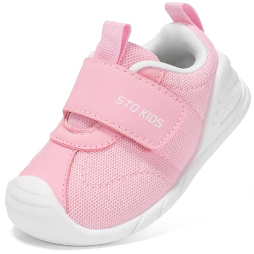 STQ KIDS Baby First Walking Shoes Toddler Barefoot Trainers Kids Boy Girls Lightweight Pre Walker Infant Sneaker Pink 12-18 Months Size 5 Wide Width