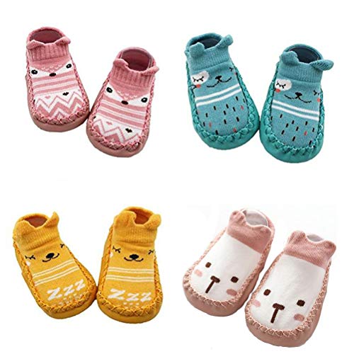 XM-Amigo 4 Pairs of Baby Boys Girls Indoor Pre-Walker Shoes Slippers Anti-Slip Shoes Socks, Pink Set02, 6-12 Months