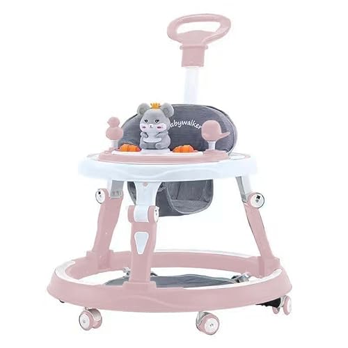 Multifunctional Foldable Baby Walker with 6 Adjustable Heights, Activity Center, Portable Music, Toys, Food Tray & Silent Wheels - Baby Walker for Boys & Girls 6 Months + - Easy Fold (Pink)