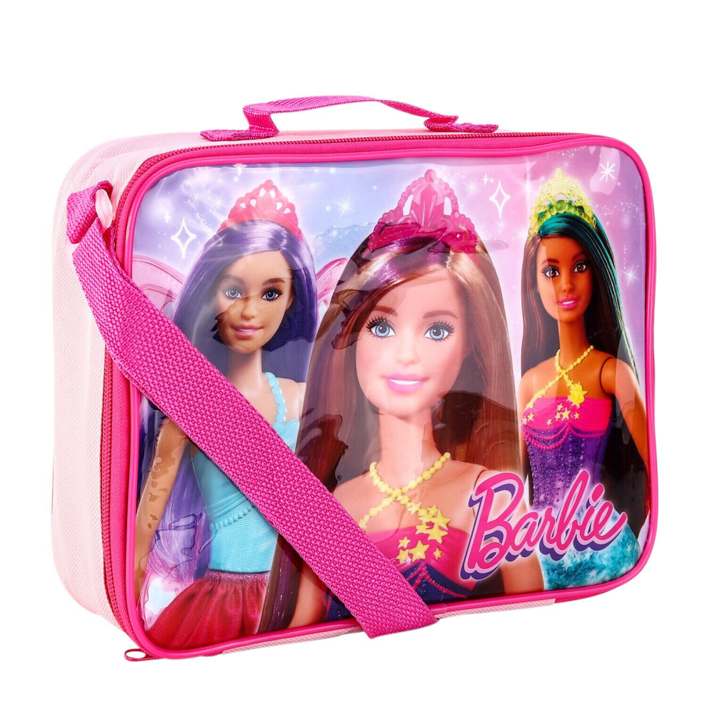 Girls Pink Barbie Doll Movie Zip Up Thermal Insulated School Sandwich Lunch Bag