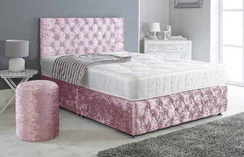 Adore Living Chesterfield Crushed Velvet Divan Bed Set - Headboard, Footboard & Mattress - Storage Bed (Pink, 4ft6 Double - 4 Drawers)