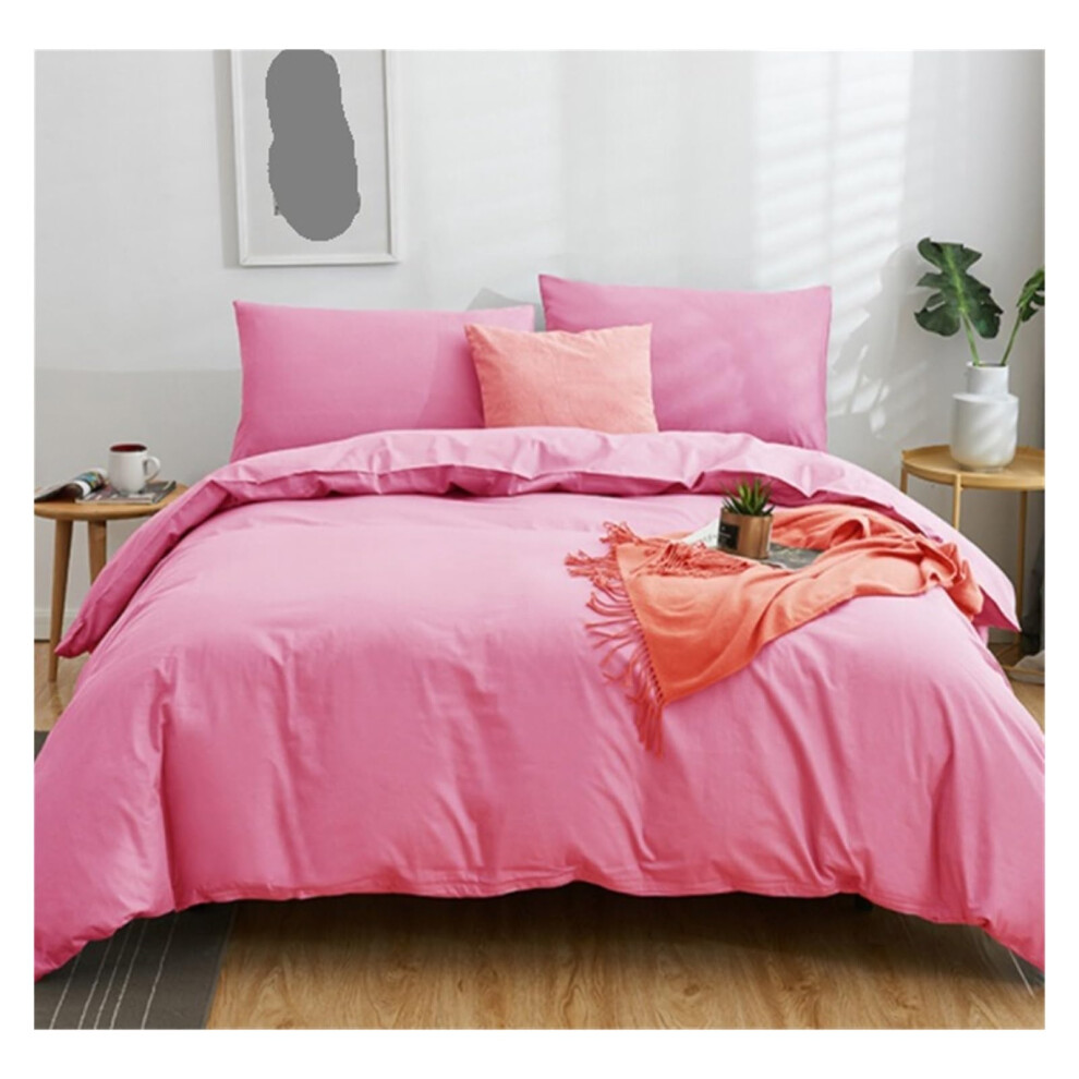 Duvet Cover Bedding Set 4Piece, Solid Color Thickened, 1.5m Pink, Double Bed, Includes Pillowcases And Quilt