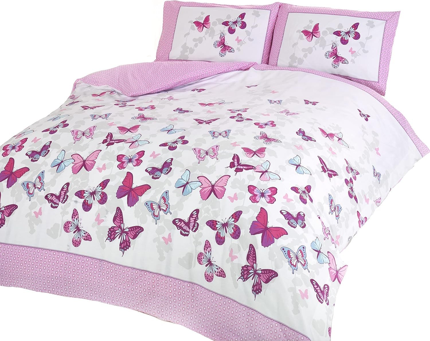 Butterfly Duvet Set Pink Double Bed Size Bedding Reversible Polyester Cotton