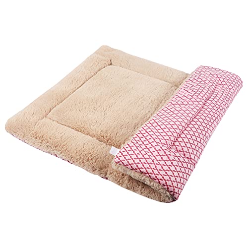 Vejaoo Dog Bed Mat Washable Cat Cushion Soft Premium Plush Dogs Mattress Sofa Dual Purpose Clearance for Small/Medium/Large Dog XZ014 (M(75 * 50CM), Short Plush Pink)