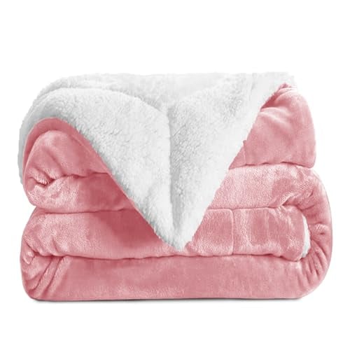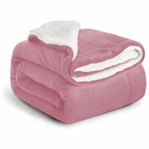 Bedsure Fluffy Sherpa Fleece Blanket - Soft Plush Double Faux Fur Blanket for Couch, Bed, Sofa, Cozy and Warm Furry Shaggy Decorative Throw Gifts for Adults, Pink, 150x200 cm