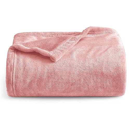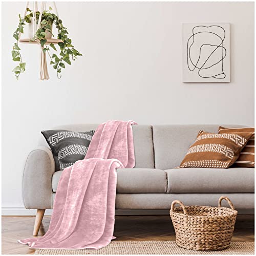 PAVILIA Light Pink Fleece Throw Blanket for Couch, Blush Pink Soft Fuzzy Flannel Throw for Sofa, Luxury Plush Microfiber Bed Blanket, Cozy Home Decorative Velvet Gift Blanket, 50x60